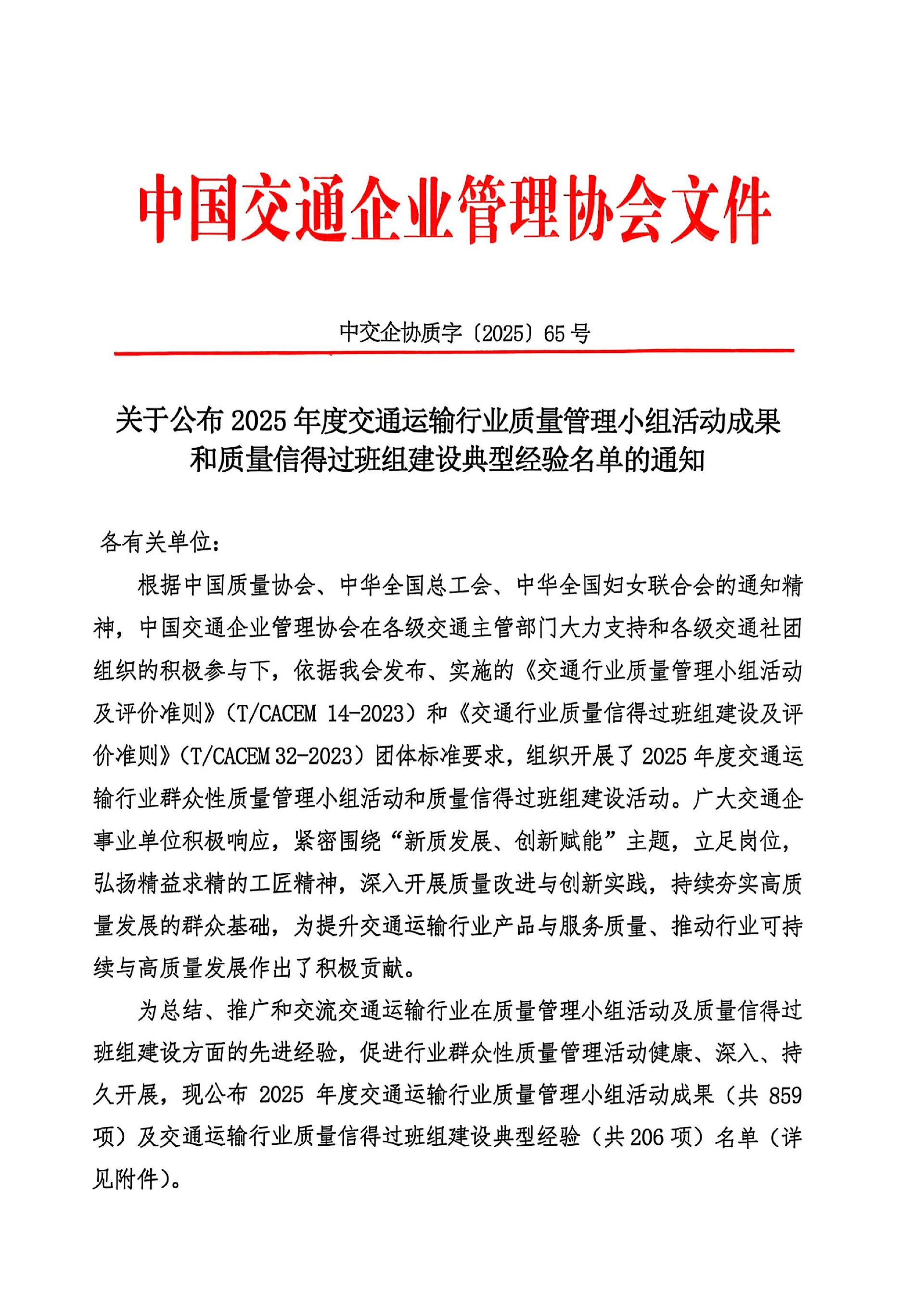 近日,中國公路建設行業協會、中國水利工程協會先后公布了第三屆全國公路建設質量管理小組活動成果評審結果和2025年度水利企業質量管理小組競賽活動結果?!啊ぁぁ?/p>